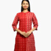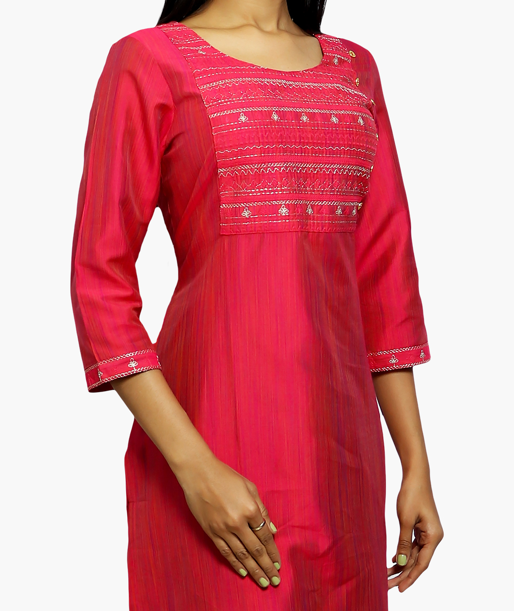 Women Embroidered Silk Blend Straight Cotton Kurta (Pink – 3/4 sleeve)
