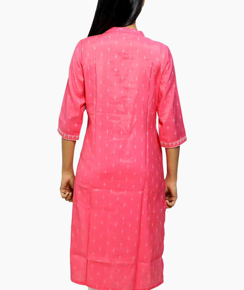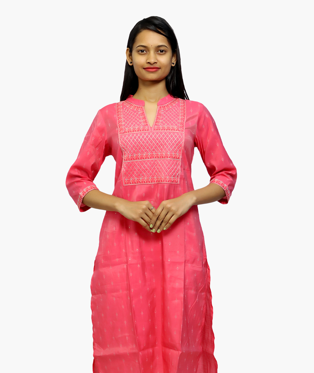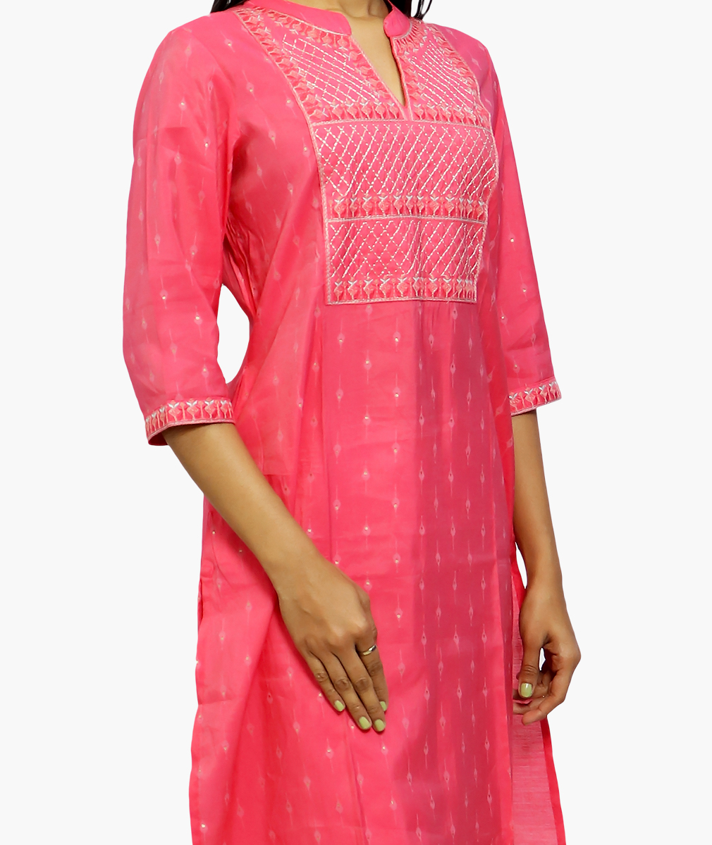 Women Embroidered Viscose Rayon Straight Cotton Kurta (Pink – 3/4 sleeve)