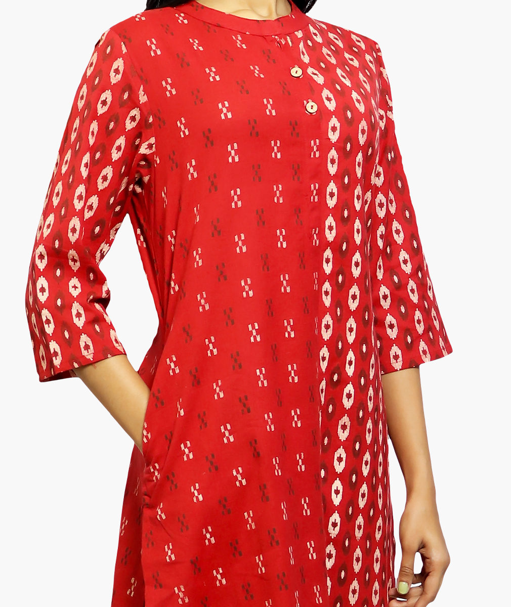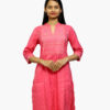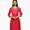 Women Floral Print Polyester Straight Cotton Kurta with Pocket (Maroon – 3/4 sleeve)