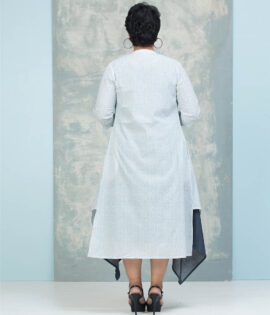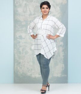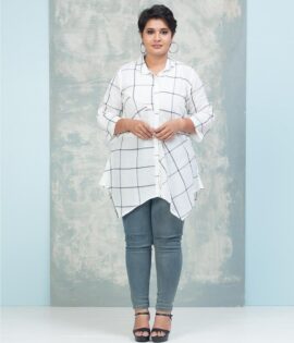 Women Printed Pure Cotton Asymmetric Cotton Kurta (White – 3/4 sleeve)